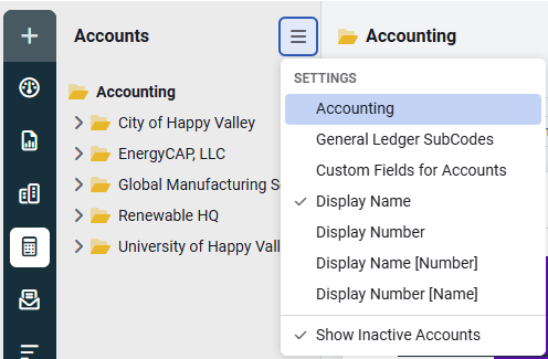 - Open the module menu (three stacked lines) and select Accounting Settings.