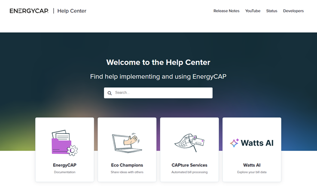 Help Center landing page
