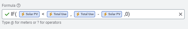 When you reference a meter in the formula, the system automatically uses the meter's primary value channel. This includes calculated primary channels. - Formula syntax